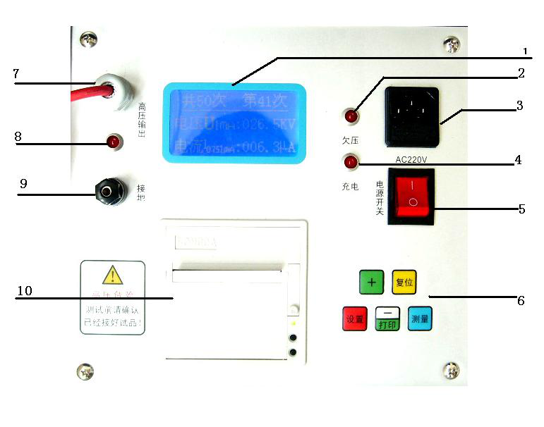 8、高壓輸出指示燈(當有高壓輸出時燈亮,沒有高壓輸出時燈滅。)