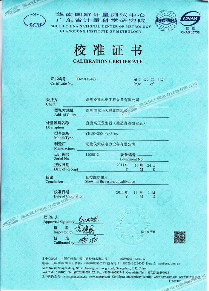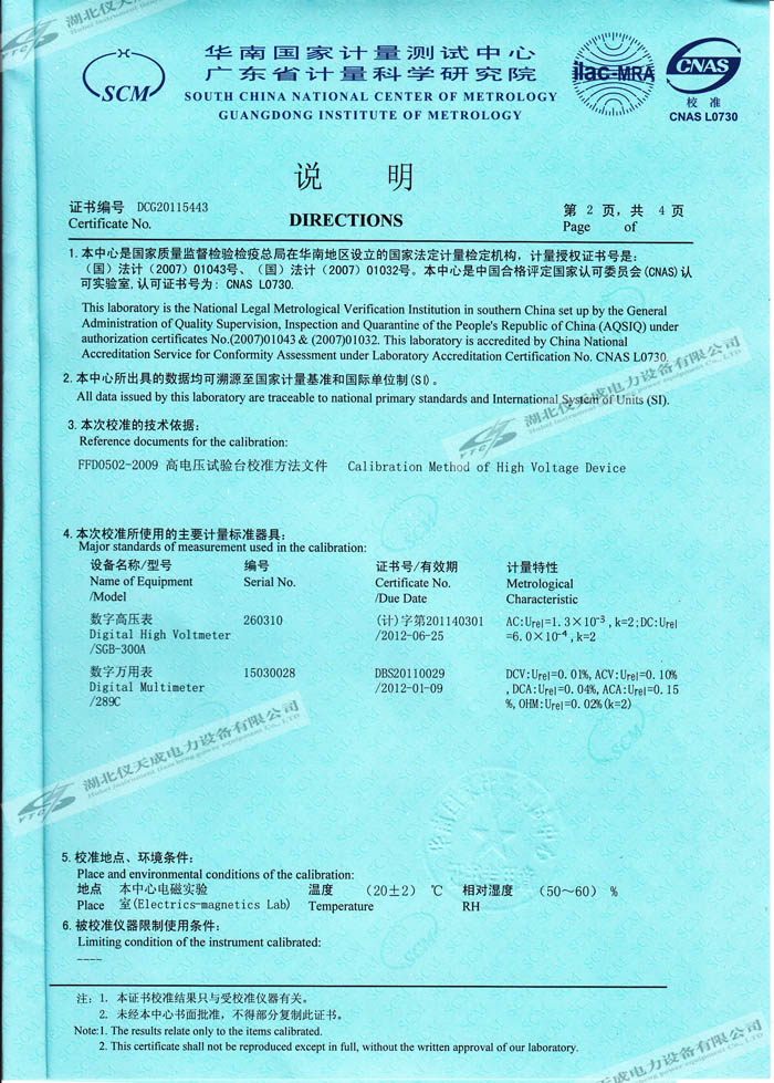 轉(zhuǎn)載:"YTCZG-200kV2mA直流高壓發(fā)生器的資質(zhì)證書" 請注明來源于儀天成電力。 更多技術(shù)問題請致電儀天成電力客戶服務(wù):027-87876585,技術(shù)部專線:027-87876585,在線客服:719388481